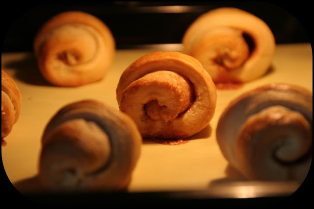 Da ich diesen wundervollen Duft leider nicht auf ein Foto bekomme gibt's hier meine frisch gebackenen und wundervoll duftenden Zimtschneckenröllchen zu sehen.